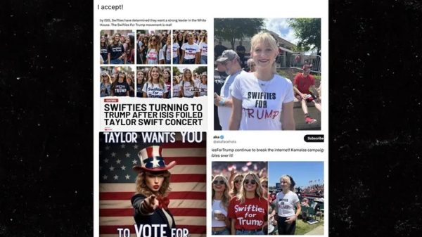 In a bizarre social media move, former President Donald Trump has implied that pop superstar Taylor Swift is backing his 2024 presidential campaign—despite clear...